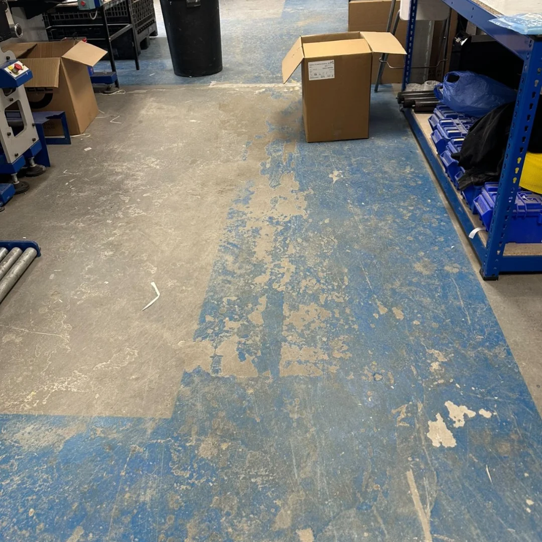 We are more than happy with the results, the shop floor looks amazing and the demarcation lines added really set it off.