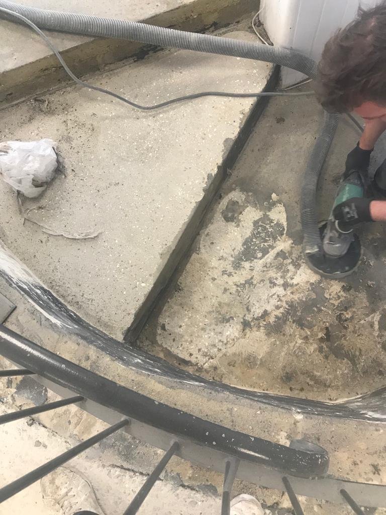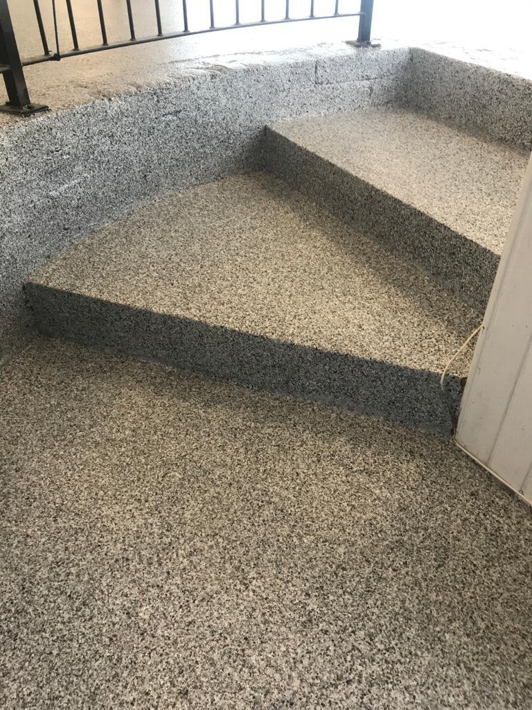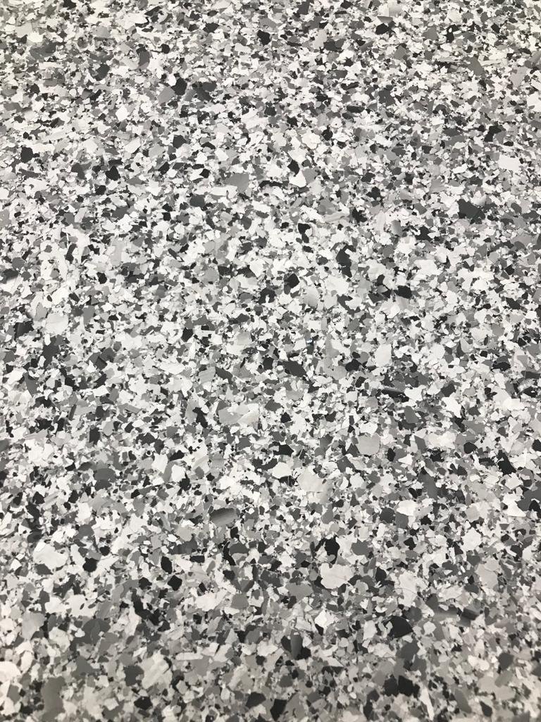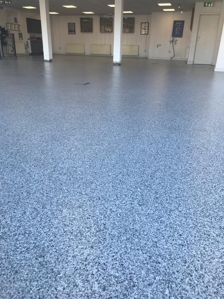 “We received an enquiry, carried out a full survey and, after removing all of the old tiles, we fully ground the concrete using diamond grinders, primed the floor to ensure it was fully sealed and then applied a seamless, decorative flake system throughout.